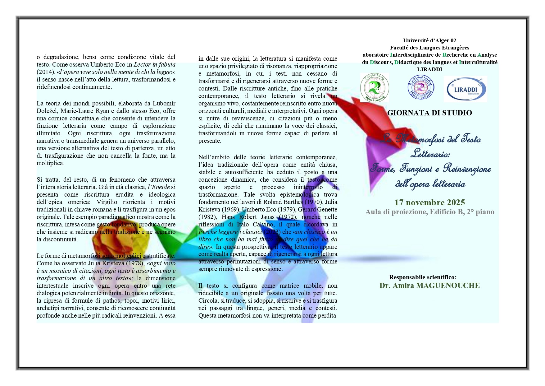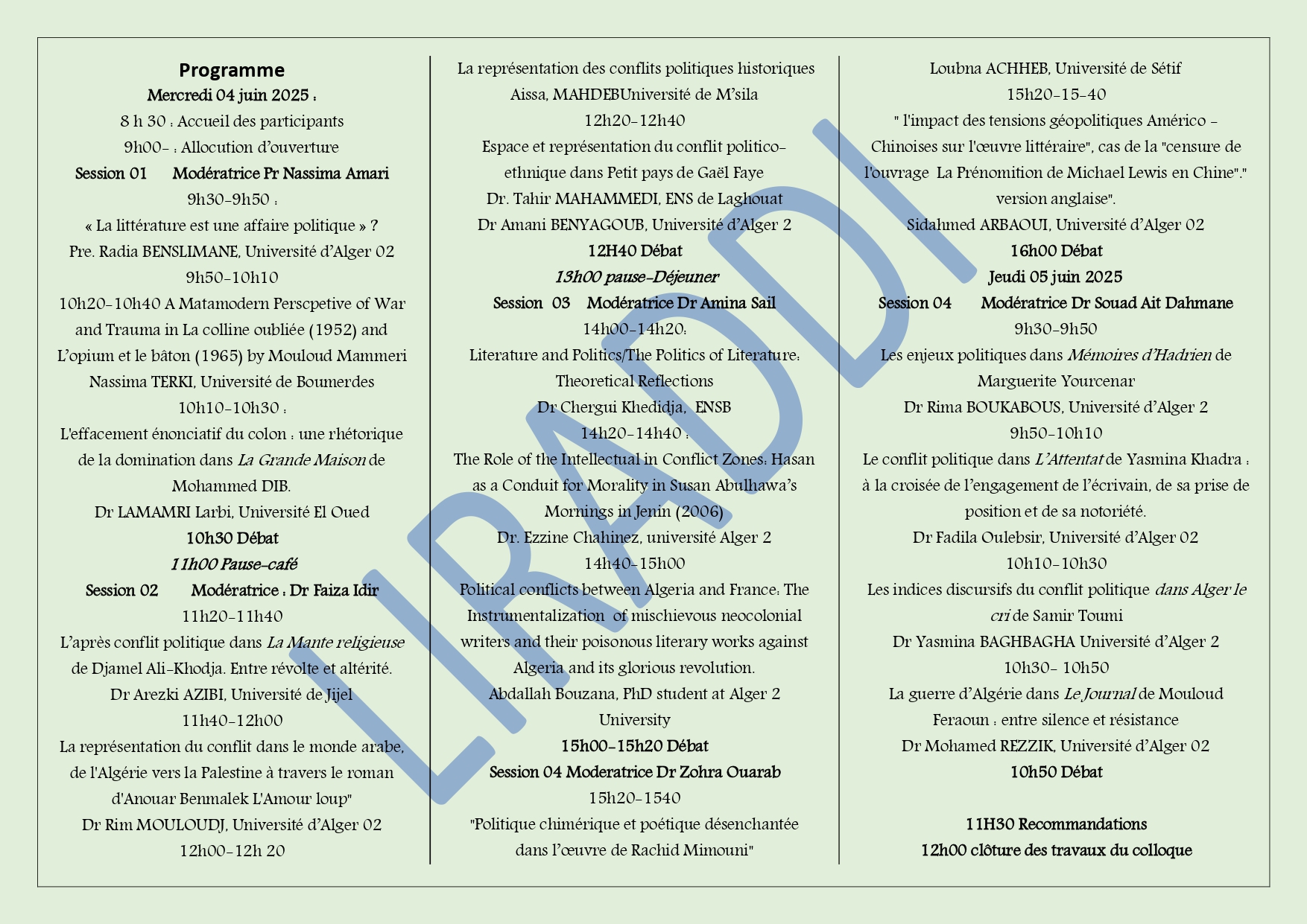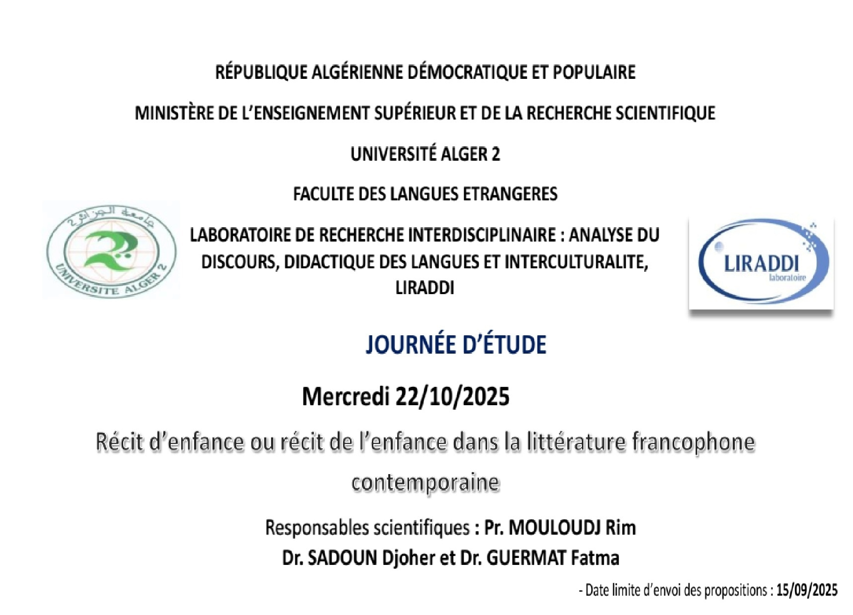 Lien vers le site de la revue de LIRADDI Langues, discours et inter cultures https://asjp.cerist.dz/en/PresentationRevue/766 Twitter